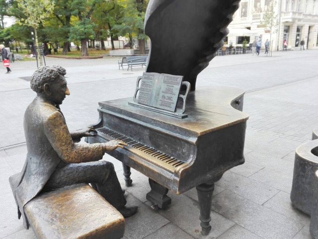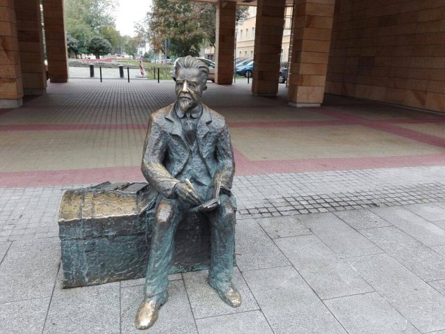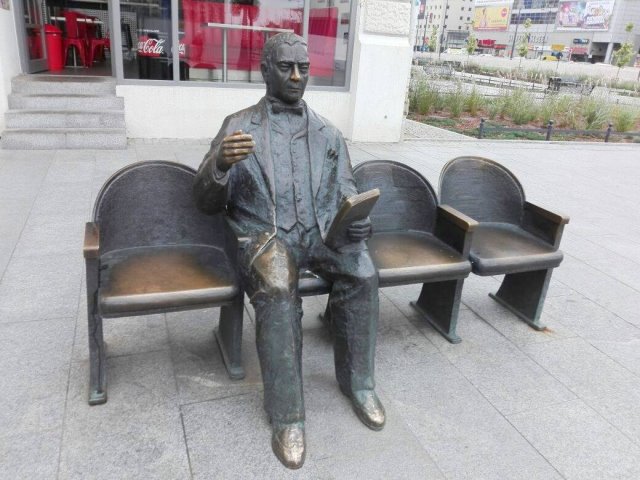 Queste statue di bronzo a grandezza d’uomo, sono state scolpite, valorizzando i minimi particolari, come le note sullo spartito di Arthur Rubinstein, pianista di fama mondiale, cittadino onorario di Łódź, il poeta Julian Tuwin, la poltrona di Jaracz, attore teatrale e cinematografico. Ho simulato una partita a carte con i tre industriali più importanti di Łódź, Poznański, Scheibler e Grohman. Un colpo d’occhio gioioso, infantile, lo comunicano le fontanelle scolpite con lo stesso tema, “i bambini ed i pesci”. Le Chiese soddisfanno le diverse confessioni.