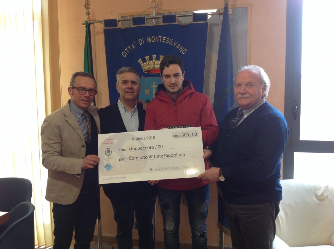 Questa mattina, l’assessore Ernesto De Vincentiis, Michele Intranuovo e Renato Petra, organizzatori dell’ultima edizione della Mostra dei Presepi artistici, hanno consegnato un contributo di 500 euro a Marco Foresta, in rappresentanza del Comitato.