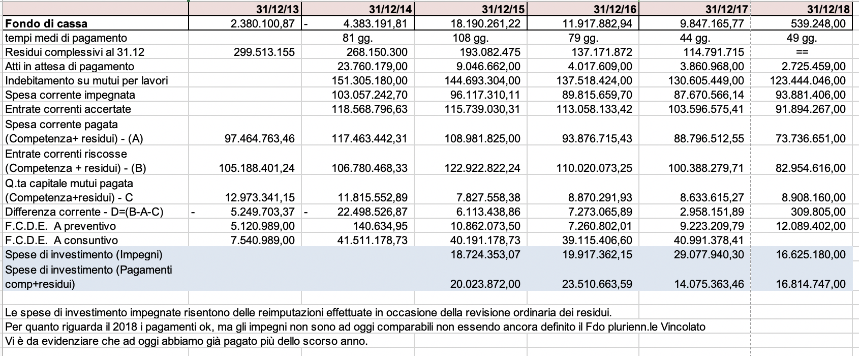 “A Pescara è stato compiuto un lavoro straordinario negli ultimi quattro anni – così il direttore generale Guido Dezio - Al momento importanti Comuni come Napoli (in predissesto) e Catania (in dissesto) hanno pesanti problemi economici e il nostro lavoro ha fatto scuola, è stato preso ad esempio in quanto capace di rimettere nella giusta rotta la città. L’indebitamento nel 2019 sarà pari al 100 per 100 delle entrate correnti e nel 2020 il rapporto debito entrate correnti sarà abbondantemente sotto il 100 per cento. Tale indicatore dimostra, insieme ad altri indicatori, la solidità del bilancio comunale e infatti, a fronte di 60 milioni di crediti correnti da incassare, abbiamo un fondo crediti di dubbia esigibilità pari a 40 milioni (cioè i 2 terzi dei crediti sono garantiti da apposito accantonamento: pertanto, in linea teorica se tutti i crediti venissero riscossi dall’ente si libererebbero 40 milioni di euro da utilizzare liberamente per opere pubbliche, sociale, verde, scuole e servizi in genere). Continuando su questa linea nel 2020 prevediamo di poter liberare risorse per circa 10 milioni di euro, senza aumentare la pressione fiscale. Ciò riteniamo sia possibile migliorando la capacità di riscossione attraverso l’affidamento in-house entro gennaio 2019 della riscossione delle entrate a una società appositamente costituita con specifica decisione del Consiglio Comunale e anche grazie a uno specifico software di cui l’Ente si è dotato per combattere l’evasione fiscale a seguito di un bando vinto mesi fa. Quando nel 2014 l’Amministrazione comunale approvò il bilancio, la stessa fu costretta ad aumentare al massimo l’addizionale Irpef e le aliquote Imu. In realtà, però, a seguito di quanto deciso dal Governo nel 2015, la pressione fiscale è sostanzialmente rimasta invariata, in quanto il gettito Imu prima casa viene garantito dallo Stato ai Comuni, mentre l’addizionale Irpef ha una franchigia di 10.000 euro per ogni cittadino, andando pertanto a colpire soltanto i redditi più alti e in proporzione agli stessi. Per quanto riguarda la tassa dei rifiuti, la stessa è stata riportata a quella del 2014, ma con la differenza che all’epoca la percentuale della differenziata era al 30 per cento circa, mentre oggi, è al 45 per cento e con gli ulteriori estendimenti in corso, per febbraio-marzo sarà pari a circa il 50 per cento. Va aggiunto inoltre che, grazie al processo di fusione delle tre Spa del settore (Attiva, Ambiente e Linda) si avranno delle economie di scala e un importante piano degli investimenti volto alla costruzione e gestione di impianti per il trattamento dei rifiuti (piattaforma ecologica di Alanno, piattaforma di Loreto Aprutino, seconda ricicleria di via Prati e soprattutto impianto di compostaggio anaerobico, cosiddetto biodigestore) l’obiettivo per Pescara sarà quello di raggiungere nei prossimo triennio una raccolta differenziata fra il 65/70 per cento senza ulteriore aumento della tassa dei rifiuti, con ricadute economiche virtuose sulle utenze”.
