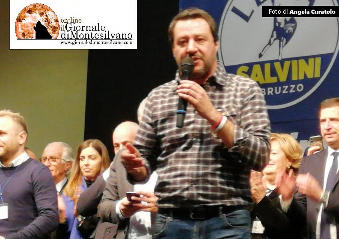 Followers ieri sera la sala fiere del PalaDeanMartin, fuori gelo e un accenno di neve, in attesa di Matteo Salvini, vice premier, che si è fatto attendere oltre la mezz'ora, dal precedente comizio a Pescara.