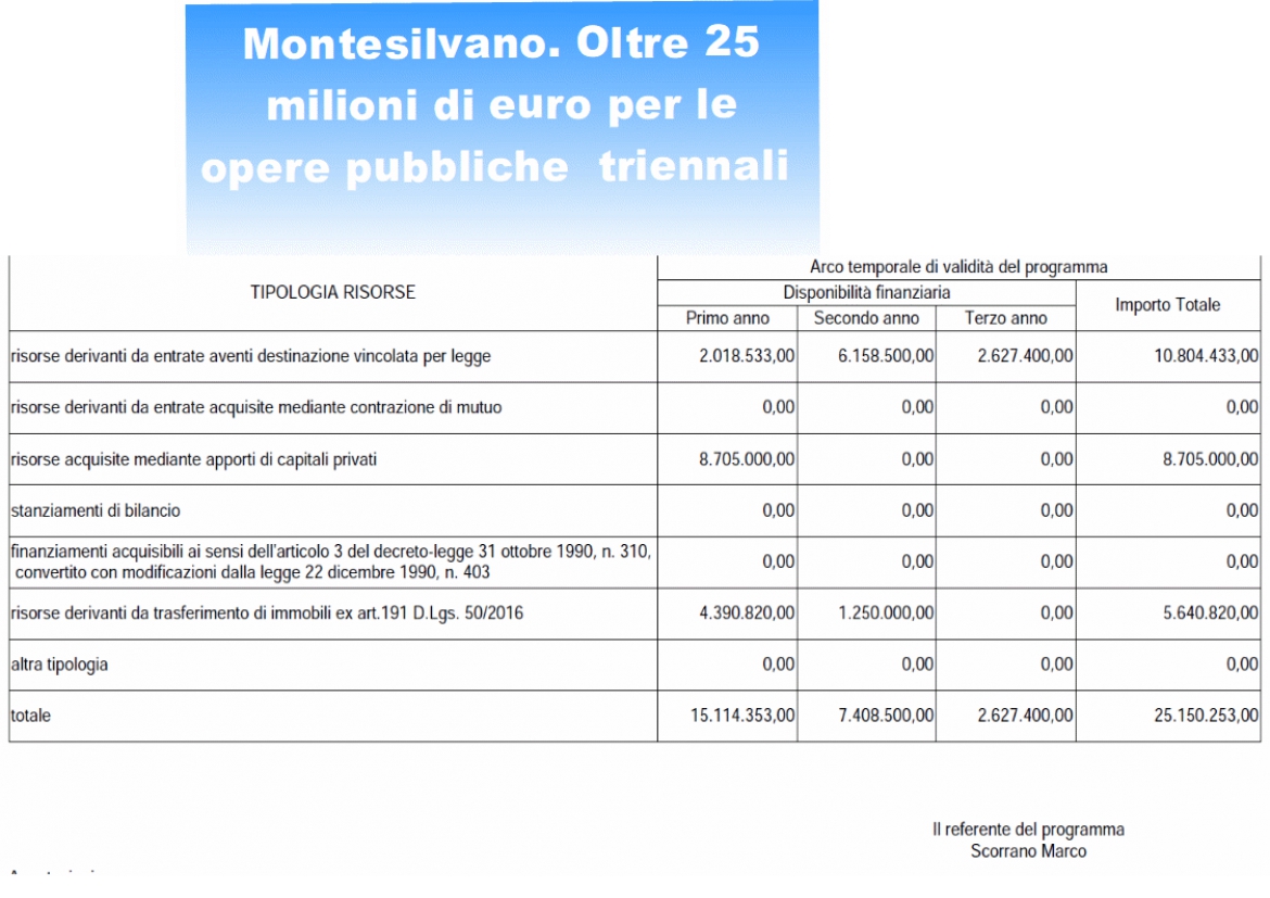 L'elenco degli interventi che verranno eseguiti in tre anni, 2020- 2022 per la città di Montesilvano consta di diversi interventi, quello che spicca è Villa Delfico, sarà ristrutturata con lavori da oltre 2milioni 500mila euro, in due anni. 1.032.000,00 euro nel secondo anno, 2021, e 1.548.000,00 euro in quello successivo, per un totale di 2.580.000,00. Come è stato annunciato in questi giorni, la sede di Villa Delfico diventerà biblioteca cittadina, per ora sarà trasferita, solo per lo studio, al PalaDeanMartin.