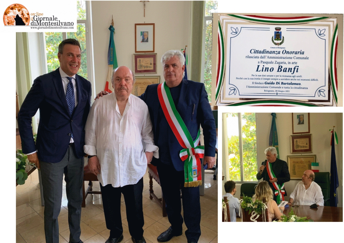 “Per la stima profonda che questa Amministrazione nutre nei confronti del noto attore pugliese, per l’ammirazione per un uomo che ha dedicato e sta dedicando la propria vita a far sorridere gli altri anche nei momenti più difficili e, ancora, per il suo impegno attivo in qualità di ambasciatore Unesco", questo il testo che deliberato il Consiglio comunale, ratificando la delibera di Giunta 51, il 28 giugno, per l'attribuzione della Cittadinanza Onoraria a Lino Banfi, al secolo Pasquale Zagaria, conferita oggi, in una celebrazione nell’aula consiliare del Comune, dopo le nozze della nipote dell’artista, Virginia con il neo marito abruzzese, Gianluca, la consegna dei tradizionali attestati di benemerenza civica.