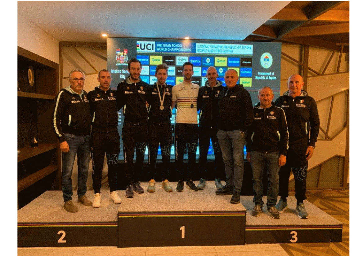 Non è passata inosservata l'impresa del sodalizio amatoriale di Piane di Montegiorgio che ha piazzato due corridori di primo piano nella gara di 100 chilometri riservata ai master 1 con un meteo inclemente tra pioggia, freddo e neve. Martinelli è riuscito a fare la differenza con un assolo che gli è valso la conquista della maglia iridata, staccando di 11 secondi il valoroso compagno di squadra Carlini, terzo Fabio Cini a 40” dal vincitore. “Ho tenuto duro, dando il tutto per tutto e, alla fine è arrivata questa vittoria – ha spiegato con una punta d’orgoglio e con emozione Martinelli, abruzzese di Mozzagrogna - La gara si è decisa tutta sull'ultima salita dove a 3 dell'arrivo ha attaccato Ettore a ripetizione per fare selezione. All'ultimo km siamo andati via io e Ettore è sono arrivato con qualche secondo di vantaggio. Sono contentissimo per la vittoria e per il podio di Ettore che è stato fondamentale per la vittoria. Un autentico trionfo di squadra, dopo una tattica perfetta con lo scopo della vittoria di entrambi. Voglio dedicare questo successo e il podio al nostro presidente Fabrizio Petritoli che fa molti sacrifici per noi insieme a tutti gli sponsor e a tutti i nostri compagni di squadra”. Gli ha fatto eco Carlini (anche lui abruzzese di Fossacesia) nonché detentore del titolo italiano: “È stata una gara dura a causa della pioggia del freddo e del percorso, sulla prima salita siamo andati via in cinque. Eravamo io, Ivan Martinelli, Fabio Cini, un tedesco, l’ex prof olandese Johnny Hoogerland poi abbiamo ripreso un altro olandese che era andato in fuga. Poi la gara si è decisa tutta sull'ultima salita dove ai 3 chilometri dal traguardo ho attaccato io a ripetizione per fare selezione e mettere in difficoltà gli altri. All'ultimo chilometro siamo andati via io e Ivan e quest’ultimo è arrivato con qualche secondo di vantaggio. Questo argento è fonte di soddisfazione che ripaga i sacrifici della stagione e anche del nostro presidente Fabrizio Petritoli a cui va la dedica di questa performance che ci ha permesso di essere tra i più forti al mondo”. La spedizione iridata in Bosnia è stata contraddistinta dal piazzamento ai piedi del podio di Vladimiro D’Ascenzo: quarto di categoria tra i master 5 per l'atleta di Bellante.