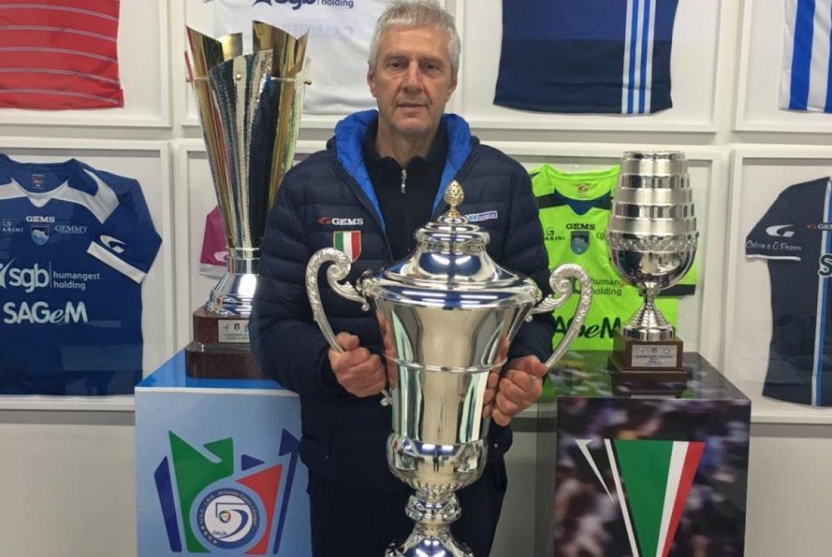 Esatto! Ripetersi è difficilissimo ma noi vogliamo difendere ad ogni costo il titolo che abbiamo conquistato e non faremo sconti a nessuno. La concorrenza è sempre più agguerrita ma siamo affezionati allo scudetto che portiamo in petto e non sarà facile scucircelo dalla maglia. Se, come dici, una valutazione della stagione è ancora impossibile non si può dire altrettanto della tua carriera di allenatore. In fatto di vittorie e di titoli hai staccato tutti e sei l’allenatore più vincente della storia del futsal italiano. Sono trentuno anni che alleno e ricordo che nei primi dieci, quindici anni di carriera molti mi consideravano un perdente, perché non avevo mai vinto nulla. In realtà in quel periodo avevo conseguito 6 o 7 promozione e un paio di semifinali scudetto, quando due squadre romane dominavano la scena, potendo contare su roster nettamente più forti rispetto a tutte le altre compagini. Questo periodo che qualcuno, non io, considera “buio” è terminato quando ho iniziato ad allenare finalmente squadre composte da grandi giocatori. Sono da sempre convinto che senza la qualità non puoi mai vincere. Nessuno fa miracoli e io non faccio eccezione. Alzi i trofei se hai i giocatori, per questo quando vinco non mi esalto mai e consiglio a tutti di non esaltarsi, anche se vedo che alcuni miei colleghi, pur non avendo vinto nulla, tendono ad enfatizzare oltre misura il loro ruolo e il loro operato. Calma ragazzi! Se devo darmi un merito, come allenatore, è quello di aver saputo sempre sfruttare al 100% le potenzialità tecniche dei giocatori e di aver saputo assemblarle. Punto!