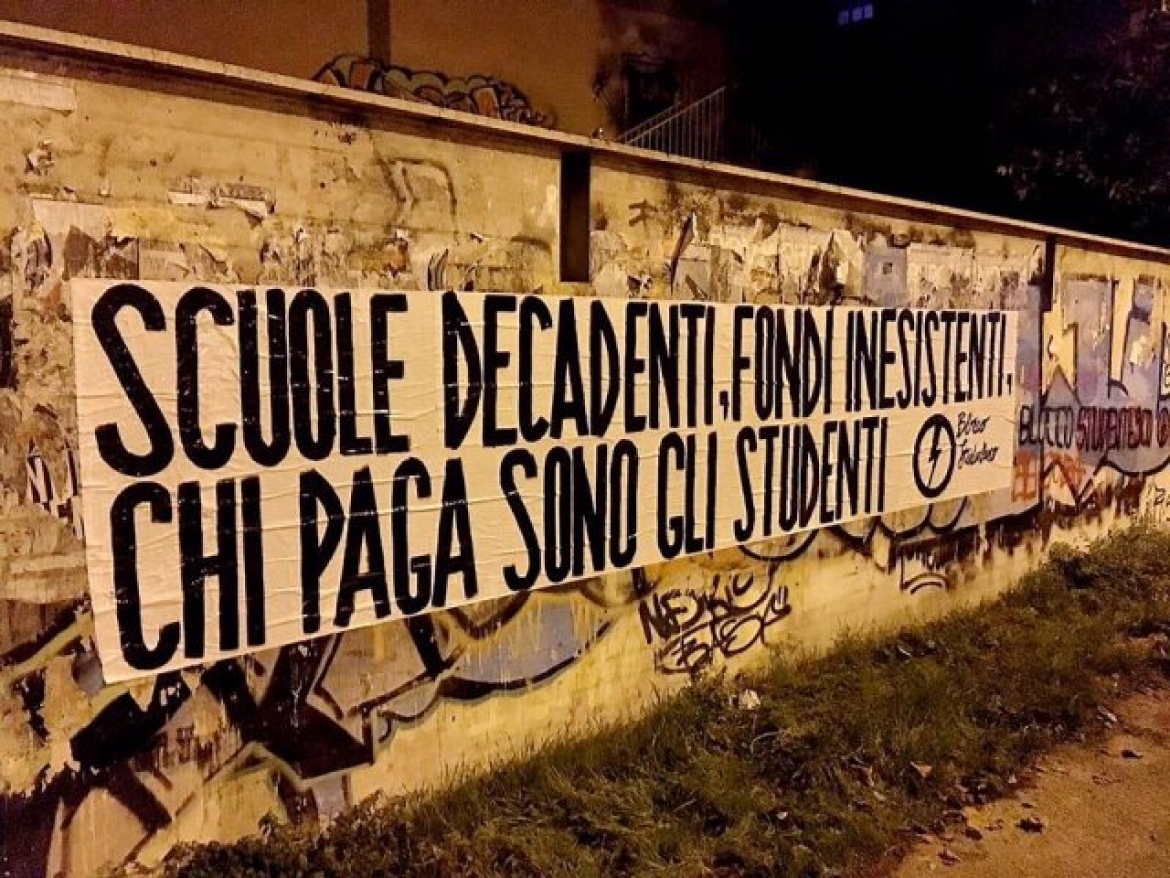 Abruzzo e Molise, 13 Settembre -"Scuole decadenti, fondi inesistenti, chi paga sono gli studenti !" Recitano così gli striscioni affissi dai militanti del Blocco Studentesco nei pressi degli istituti superiori d'Abruzzo e Molise, per denunciare le precarie condizioni degli edifici scolastici delle nostre Regioni e il mancato stanziamento di fondi per i lavori d'adeguamento struttarali necessari per la messa a norma.