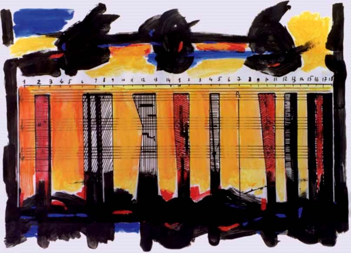 Con la sua Personale ad Ardea “Segno-Suono-Luce”, riconosciuta per il moderno linguaggio espressivo, dove Guadagnuolo ricerca nuovi cammini percettivi alternativi, avendo avuto modo di conoscere ed inserire compositori, riportando il fattore uditivo a quello visivo tramite immagini speculari che ne mutano l’apparenza sensibile. La mostra si compone di una parte delle 100 opere del 1996/1997, con partiture musicali autografe di alcuni importanti compositori contemporanei, raccolte sotto il titolo di “Segno-Suono-Luce”. Vediamo scritture musicali, fra gli altri di Guido Baggiani, Bruno Bettinelli, Luciano Berio, Mauro Bortolotti, Sergio Calligaris, Luciano Chailly, Aldo Clementi, Massimo Coen, Franco Donatoni, Fernando Grillo, Domenico Guaccero, Roberto Hazon, Fausto Razzi, Ruggero Lolini, Giacomo Manzoni, Dimitri Nicolau, Franco Oppo, Francesco Pennisi, Goffredo Petrassi, Boris Porena, Giancarlo Schiaffini, Flavio Testi, Guido Turchi. Così aveva scritto nel suo saggio Palma Bucarelli ex direttrice della Galleria Nazionale d'Arte Moderna di Roma nel marzo 1998: «La scelta pittorica di Francesco Guadagnuolo di aver aperto precedentemente spazi destinati alla poesia e in un secondo momento creativo alla musica, mi dà l’idea di qualcosa di nuovo direi di un vero avvenimento artistico, perché ci indica una strada di ragguardevole originalità. Con queste opere Guadagnuolo, dopo i “Luoghi del Tempo” e “Luoghi del Corpo” offre una nuova interazione tra musica e pittura che, partendo dallo spartito, si esteriorizza nell’intero corso progettuale e compositivo alla totalizzante opera di trasposizione grafico-pittorica. Vediamo perciò con piacere questa iniziativa che presenta qualcosa di diverso e, probabilmente, di utile per sviluppi successivi. Fin dagli esordi di questo eclettico pittore, col mio grande amico Argan ci siamo trovati d’accordo su questo punto. Guadagnuolo, artista multimediale non nuovo a simili operazioni, in queste opere affida alla musica un ruolo centrale sul piano linguistico-grafico e di pensiero. L’artista realizza, infatti, una simbiosi fra “segno, gesto, suono” e scrittura musicale che è sempre stata uno dei fattori fondamentali della comunicazione per produrre il suono[…].Una nuova immagine appare così sul foglio composta di segni, di colore e di note in modo da assumere valore di oggetto e di espressione significante. Dando sviluppo al dinamismo, alle linee di forza, al colore e alla materia, l’artista fa prendere corpo a un’energia che diventa uno straordinario concentrato di sinestesie espressive. Non conosco un fenomeno equivalente nel mondo artistico moderno fino a questo momento che possa paragonarsi a tale esperienza[…]».