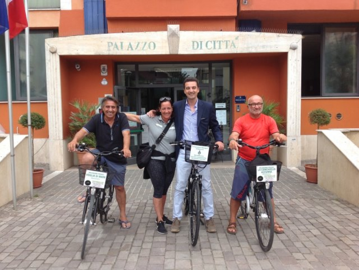 “A Montesilvano vai in bici al mare”. E’ questo l’appello lanciato dalla Cooperativa Balnearia Abruzzo. Questa mattina il presidente Riccardo Padovano e il vicepresidente Angelo D’Orazio, insieme a Marta Fargione della Velocity Cetrullo, hanno consegnato al sindaco Francesco Maragno, una bici con pedalata assistita, in comodato d’uso gratuito temporaneo. «Vogliamo invogliare - ha detto Padovano – i bagnanti ad utilizzare le bici per raggiungere gli stabilimenti balneari. Per questo motivo, i balneatori aderenti alla Cooperativa mettono a disposizione dei propri clienti una di queste bici, che potrà essere utilizzata per spostarsi tra Francavilla, Pescara, Silvi, passando per Montesilvano in quella che per noi è la Grande Pescara. Per dare il primo esempio la bici che abbiamo consegnato al sindaco Maragno è la bici numero 1». «Apprezziamo particolarmente questo progetto – afferma Francesco Maragno - e ringraziamo la Cooperativa Balnearia di questa graditissima consegna. Siamo convinti che la mobilità sostenibile sia un ottimo mezzo per vivere il nostro territorio e promuoverlo anche agli occhi dei turisti. La pista ciclopedonale realizzata grazie al progetto Bike to Coast, rende il nostro lungomare come quello delle città vicine, ancor più ideale per questa mobilità. Montesilvano - ricorda ancora il sindaco – è la prima città in Abruzzo ad aver attivato il progetto Bici Sicura, per punzonare e marchiare le bici, rendendole così identificabili e a prova di ladro. Questo a dimostrazione del valore che diamo a questo mezzo di trasporto. Ringrazio quindi Padovano e tutti i balneatori che hanno voluto fortemente questo progetto».