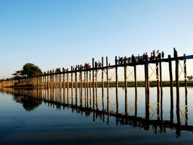 Vedo sulle bancarelle esposti oggetti di artigianato mai visti prima, in nessun altro paese ho potuto ammirare tali rarità. Nei dintorni visitiamo Amarapura, con il ponte tutto in teak vecchio di 200 anni, poi Ava che si visita in barca e calesse, quindi Sagaing per un magico tramonto su un paesaggio collinare trapuntato di pagode dorate.