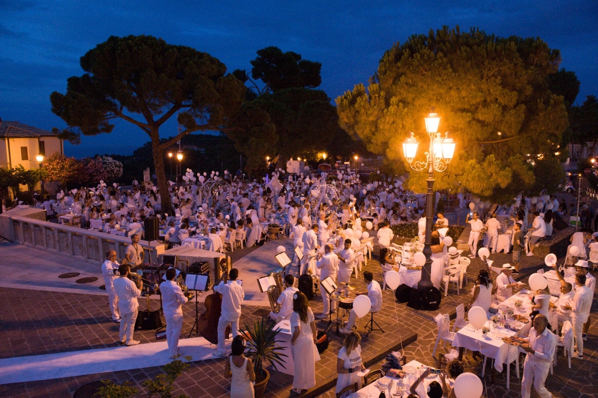I partecipanti organizzeranno una cena total white. Ognuno porta da casa tavoli, cavalletti e plance, sedie e sgabelli, vivande con cesti, cestini e borse frigo, tovaglia e tovaglioli rigorosamente in tessuto, piatti e stoviglie in ceramica, bicchieri di vetro o cristallo.
