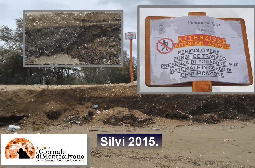 Nel 2015, infatti, la spiaggia in quel punto aveva subito un dissesto, in seguito a smottamento, e la sabbia aveva creato un enorme gradone, portando alla luce del terriccio scuro, così fu interdetta la balneazione in attesa della bonificata dell'area.