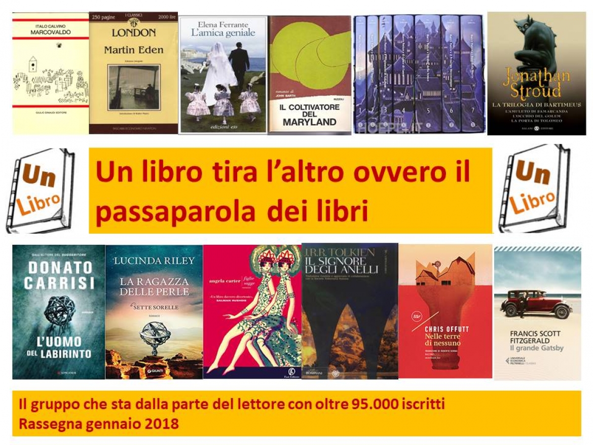 Se siete appassionati lettori o semplici curiosi in cerca di nuovi titoli, venite a trovarci ed entrate nella comunità di lettori più frequentata di Facebook: Un libro tira l'altro ovvero il passaparola dei libri.