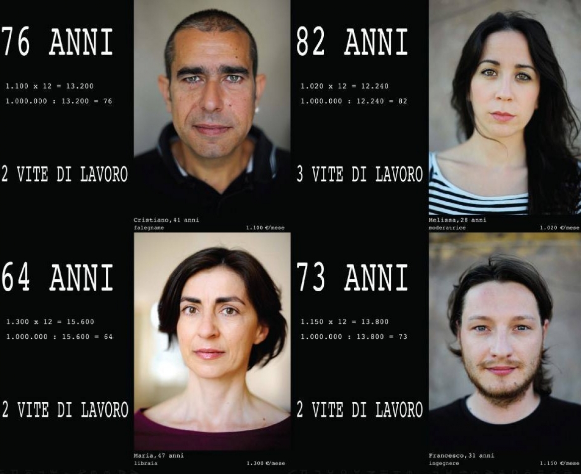 Apparent Million Age. Quante vite per un milione di euro è stato già esposto a Roma e Firenze ed è innanzitutto «un gioco fotografico che nasce dalla volontà di ‘umanizzare’ il denaro», un gioco che però fa riflettere, e molto, sulla percezione che abbiamo di tempo e soldi. In mostra 31 ritratti di persone comuni di diversi Paesi accompagnati da un calcolo matematico, che risponde a una domanda: in quanti anni, corrispondenti a quante vite di lavoro, questa persona riuscirebbe a guadagnare un milione di euro? La cifra è simbolica, un punto di arrivo apparentemente alla portata di tutti, basterebbe una vincita in denaro o il sogno di ricevere una inaspettata eredità.