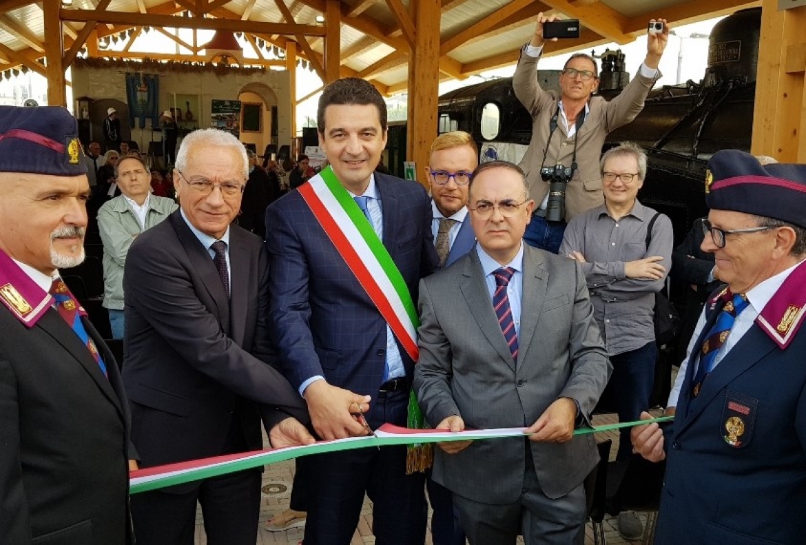 "Sono passati 75 anni, era l’11 e 12 ottobre del 1943, ha detto il sindaco Francesco Maragno, quando i bombardamenti della seconda guerra mondiale distrussero la ferrovia a Montesilvano e solo oggi riusciamo a inaugurare la tettoia per restituire questo piccolo spazio alla città che sarà reso ancora più fruibile. I ringraziamenti oggi saranno tantissimi perché questo progetto non poteva essere realizzato soltanto dell’intuizione e dalla disponibilità di una persona, ma ho visto partecipare a questa iniziativa tantissime persone note e meno note. Sicuramente è stato fondamentale l’apporto della Fondazione PescarAbruzzo, del professor Nicola Mattoscio, così come è stato importante il lavoro del Comune di Montesilvano nelle persone di Gianni Scannella, del progettista Marco Volpe, dell’architetto collaudatore Sandro Germano, della ditta esecutrice dei lavori Edilbeth di Pino Di Fazio, e l’Acaf (Associazione culturale amatori ferrovie) nelle persone di Renzo Gallerati, Antonio Schiavone e Antonello Lato e ultimo, ma non certo in ordine di importanza, il direttore generale della Fondazione delle Fs italiane Luigi Cantamessa. E’ stata partecipazione corale a quella che ritenevamo e riteniamo un punto d’eccellenza dell’offerta culturale di questa città. Anche perché lo sviluppo della ferrovia si lega indissolubilmente con lo sviluppo di Montesilvano. Voglio ringraziare anche il professor Piergiorgio Orsini dai cui libri sono state espunte delle riflessioni significative su quella che è il lato valoriale della nostra stazione. Oggi più che mai sono convinto, ha concluso il primo cittadino, che la cultura possa muovere risorse e investimenti. Circa 150 mila persone, finora, hanno visitato il nostro Museo del treno, provenienti da fuori città, da fuori regione e da fuori Italia e noi vogliamo continuare a promuoverlo per le eccellenti ricadute, anche economiche, sulla città".