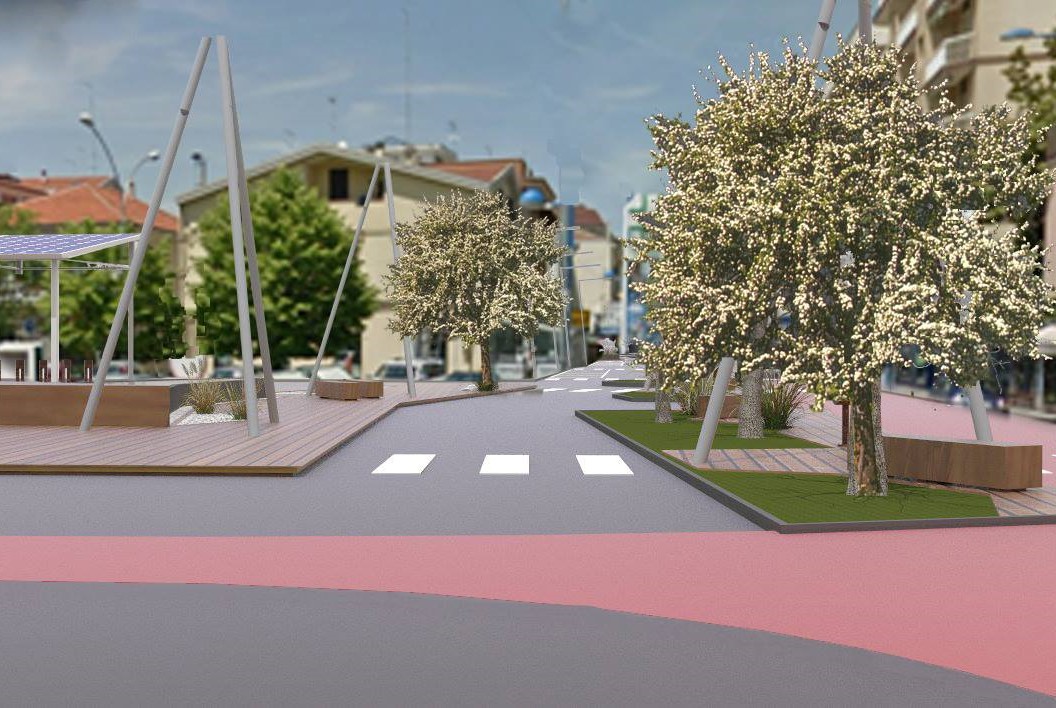 Inoltre sono inserite fasce ciclabili a doppio senso di marcia che favoriscano la mobilità sostenibile, “come indicato dai tanti studi più recenti di riqualificazione urbana”.