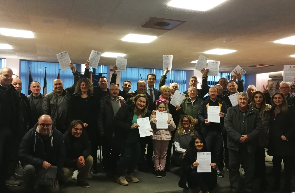 Presenti alla cerimonia di consegna anche i rappresentanti sindacali, Riccardo Padovano, Sib Confcommercio e Ottavio Di Stanislao, Assobalneari Confindustria.