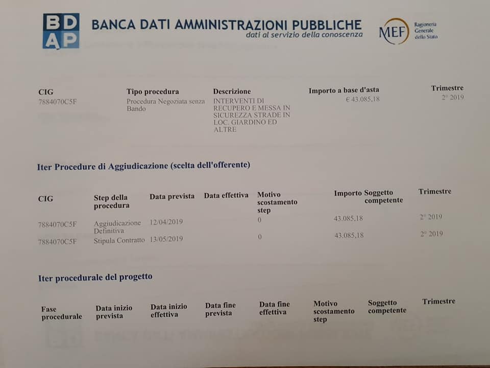 Il Sindaco Vincenzo d'Ercole di Castiglione Messer Raimondo, si vede "costretto a rispondere" e "rassicurare" i cittadini, con una nota sul social, per precisare che "i lavori relativi alla messa in sicurezza del territorio, con risorse concesse dal governo nazionale, e che dovevano essere affidati entro il 15 maggio 2019, sono stati affidati nel rispetto dei termini e sono stati già conclusi".