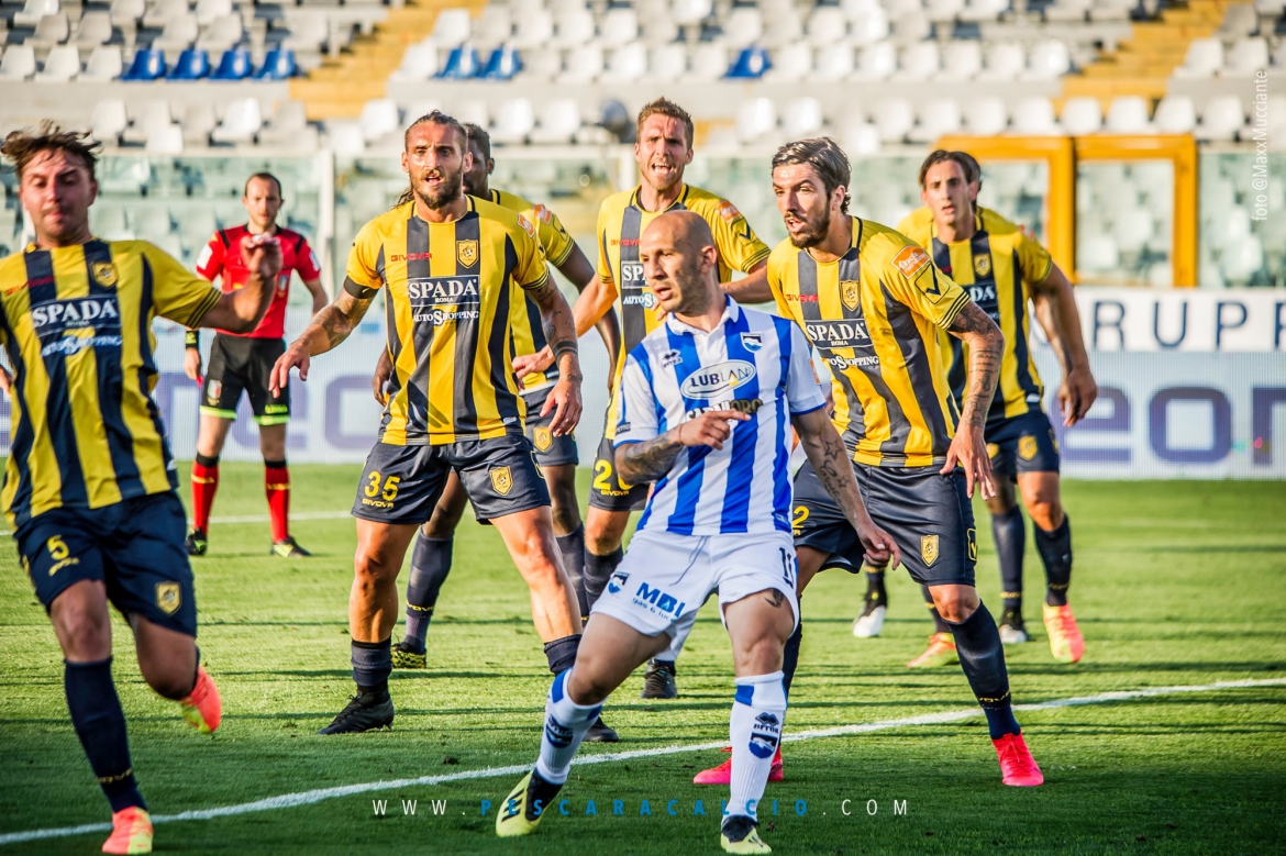 Dopo oltre tre mesi di stop riparte il campionato di serie B e torna subito alla vittoria il Delfino, che all'Adriatico supera agevolmente la Juve Stabia grazie ad una prestazione più che convincente. Gara ben preparata da mister Legrottaglie, che schiera un inedito 4-4-2 con Galano e Pucciarelli tandem d'attacco. Dopo aver sciupato alcune buone occasioni con Memushaj e Pucciarelli, il Pescara trova il meritato vantaggio al 57' con lo stesso Pucciarelli, che dribbla il portiere ospite Provedel e deposita nella porta sguarnita. I padroni di casa insistono e mettono al sicuro il risultato con Zappa (71') e Crecco (79'), prima del gol della bandiera dei campani siglato da Elia (87'). Con questo successo i biancazzurri superano in classifica proprio la Juve Stabia, portandosi a quota 38 e soprattutto a +5 dalla zona playout. Delfino atteso adesso venerdì prossimo dalla trasferta di Pisa.