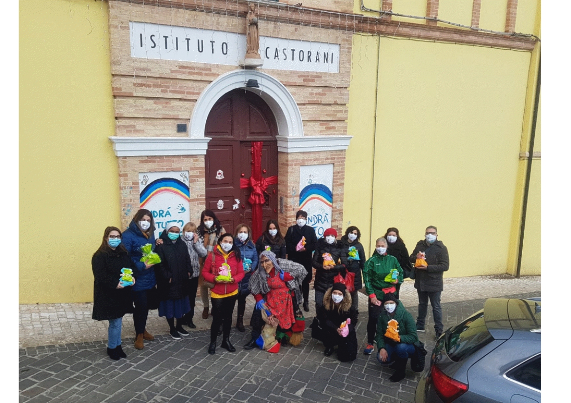 L’emergenza sanitaria non ha fermato la Befana della Commissione Pari Opportunità del Comune di Giulianova che, nel pomeriggio, ha bussato al portone dell’Istituto Castorani di Giulianova ed ha consegnato calze piene di dolciumi ed altri regali destinati ai piccoli ospiti della struttura. Ad accogliere la presidente della Cpo Marilena Andreani, la Vice Sindaco ed Assessore con delega alle Pari Opportunità e Politiche Sociali Lidia Albani ed una delegazione della Cpo, sono state suor Paola ed una operatrice dell’istituto. Per la sicurezza dei bambini la consegna dei doni è avvenuta all’esterno dell’edificio del Castorani.