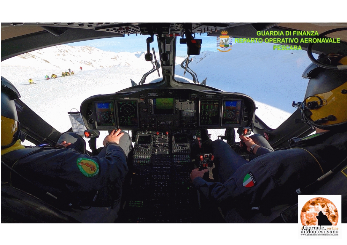 MASSA D’ALBE (AQ): La finestra di condizioni meteorologiche ottimali dei giorni scorsi ha consentito di impiegare gli elicotteri della linea AW-139 della Sezione Aerea della Guardia di Finanza di Pescara, utilizzati, congiuntamente ad altri assetti, per il trasporto dei soccorritori dal campo base di Forme (AQ) alla quota di ricerca nella Valle Majelama e nella Valle Genzana del Monte Velino. Ai mezzi rischierati si è aggiunto un avio-rifornitore del Servizio Aereo della Guardia di Finanza, il cui impiego ha permesso di ottimizzare le operazioni di ricerca assicurando il rifornimento di carburante, direttamente in zona operazioni, di tutti gli elicotteri delle Forze di Polizia ed Enti dello Stato impegnati nelle ricerche.