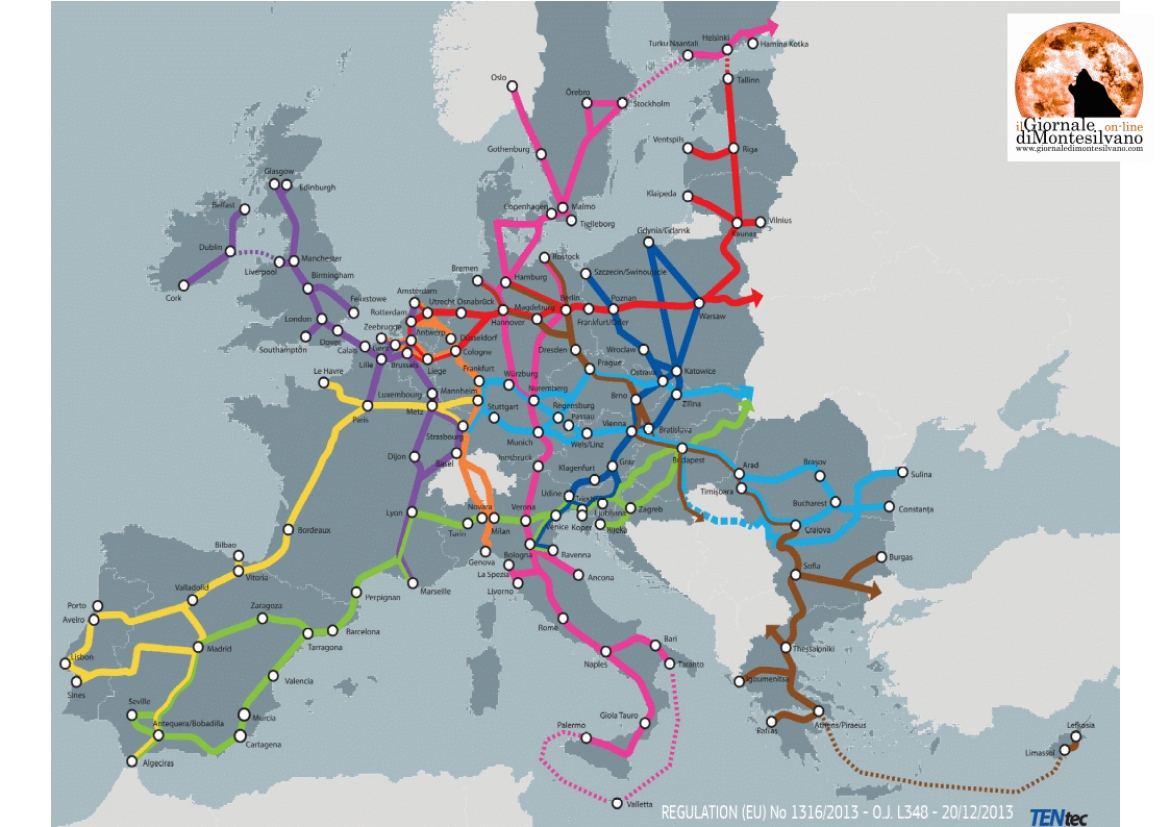 La politica della rete transeuropea di trasporto (TEN-T) riguarda l'attuazione e lo sviluppo di una rete europea di linee ferroviarie, strade, vie navigabili interne, rotte marittime, porti, aeroporti e terminali ferroviari. L'obiettivo finale è colmare le lacune, rimuovere le strozzature e le barriere tecniche, nonché rafforzare la coesione sociale, economica e territoriale nell'UE. L'attuale politica TEN-T si basa sul regolamento (UE) n . 1315/2013 . Oltre alla costruzione di nuove infrastrutture fisiche, la politica TEN-T sostiene l'applicazione di innovazione, nuove tecnologie e soluzioni digitali a tutti i modi di trasporto. L'obiettivo è un migliore utilizzo delle infrastrutture, un ridotto impatto ambientale dei trasporti, una maggiore efficienza energetica e una maggiore sicurezza. La TEN-T comprende due "livelli" di rete: - La rete centrale comprende le connessioni più importanti, collegando i nodi più importanti, e sarà completata entro il 2030. - La rete globale copre tutte le regioni europee e sarà completata entro il 2050. La spina dorsale della rete centrale è rappresentata da nove corridoi della rete centrale, che sono stati individuati per razionalizzare e facilitare lo sviluppo coordinato della rete centrale. Due priorità orizzontali, il sistema europeo di gestione del traffico ferroviario (ERTMS) e le autostrade del mare, completano queste due priorità . La supervisione dei corridoi e delle due priorità orizzontali spetta ai coordinatori europei, nominati dalla Commissione europea.