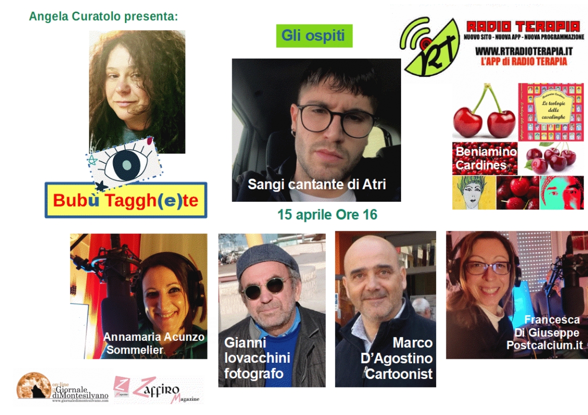 Bubù tagg(h)ete! Su Radioterapia.it, web Radio con sede a Montesilvano, domani, 15 aprile 2022, alle ore 16, c’è la puntata pasquale della trasmissione di Angela Curatolo con tanti ospiti da gustare e scoprire. Bubù tagg(h)te! È un Viaggio nelle curiosità, nei personaggi e nei fatti da scoprire con ospiti del panorama culturale e d’intrattenimento in studio.