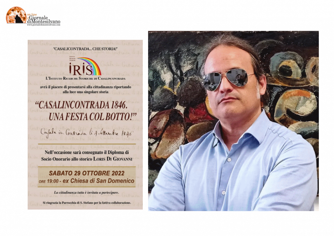 Nel corso dell’incontro avverrà la consegna del Diploma di Socio Onorario dell’Istituto Ricerche Storiche (I.RI.S.) allo scrittore e storico Loris DI GIOVANNI. E’ possibile seguire le attività dell’I.RI.S. sulla pagina ufficiale facebook “Istituto Ricerche Storiche – IRIS” e sulla pagina ufficiale Instagram “iris_istituto”.