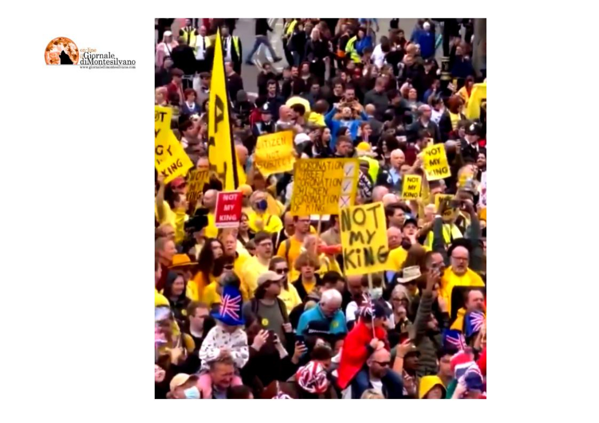 Il leader del gruppo antimonarchico britannico Republic, Graham Smith, è stato arrestato nel centro di Londra, dove aveva inscenato una protesta lungo il tragitto della processione per l'incoronazione di Carlo III. Con lui sono stati arrestati altri cinque manifestanti, che si sono presentati in tuta gialla con un bandierone giallo con la scritta "Not My King" (non il mio re). Republic aveva espresso l'intenzione di manifestare comunque nel centro di Londra, malgrado l'avvertimento che Scotland Yard ieri avrebbe avuto una "bassa tolleranza" nei confronti delle proteste contro l'incoronazione. Si legge su Ansa.