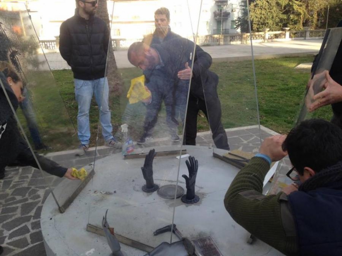 Lanciano, 9 Febbraio – Questo pomeriggio alcuni aderenti del movimento CasaPound Italia hanno provveduto a restaurare, insieme ad alcuni operai del comune e grazie al supporto logistico del "Comitato 10 Febbraio", il monumento dedicato ai Martiri delle Foibe ed alle vittime dell’Esodo degli italiani della Venezia Giulia e della Dalmazia, danneggiato alcuni mesi fa da un atto vandalico. “Dopo aver purtroppo preso atto del danneggiamento avvenuto qualche mese fa, come preannunciato abbiamo provveduto di persona a pulire il monumento, dopo il primo intervento di pulizia effettuato subito dopo l’atto vandalico, ed a ripristinare nel suo aspetto originale la scultura raffigurante le mani degli infoibati, mutilate di alcune dita” afferma Nico Barone, responsabile lancianese CasaPound. “Così facendo, abbiamo avuto modo di riparare alla ignobile stupidità di alcuni, ed il monumento si presenterà domani in un aspetto accettabile in occasione del Giorno del Ricordo, dedicato alla commemorazione delle migliaia di italiani che persero la vita ed alle centinaia di migliaia che dovettero abbandonare la propria terra a causa della pulizia etnica operata dalle milizie jugoslave al termine della Seconda Guerra Mondiale nelle terre da sempre italiane della Venezia Giulia e della Dalmazia. Pertanto invitiamo tutti i lancianesi a partecipare al ricordo di questi italiani che metteremo in atto domani mattina alle ore 10:00 presso il monumento al Largo Martiri delle Foibe”.