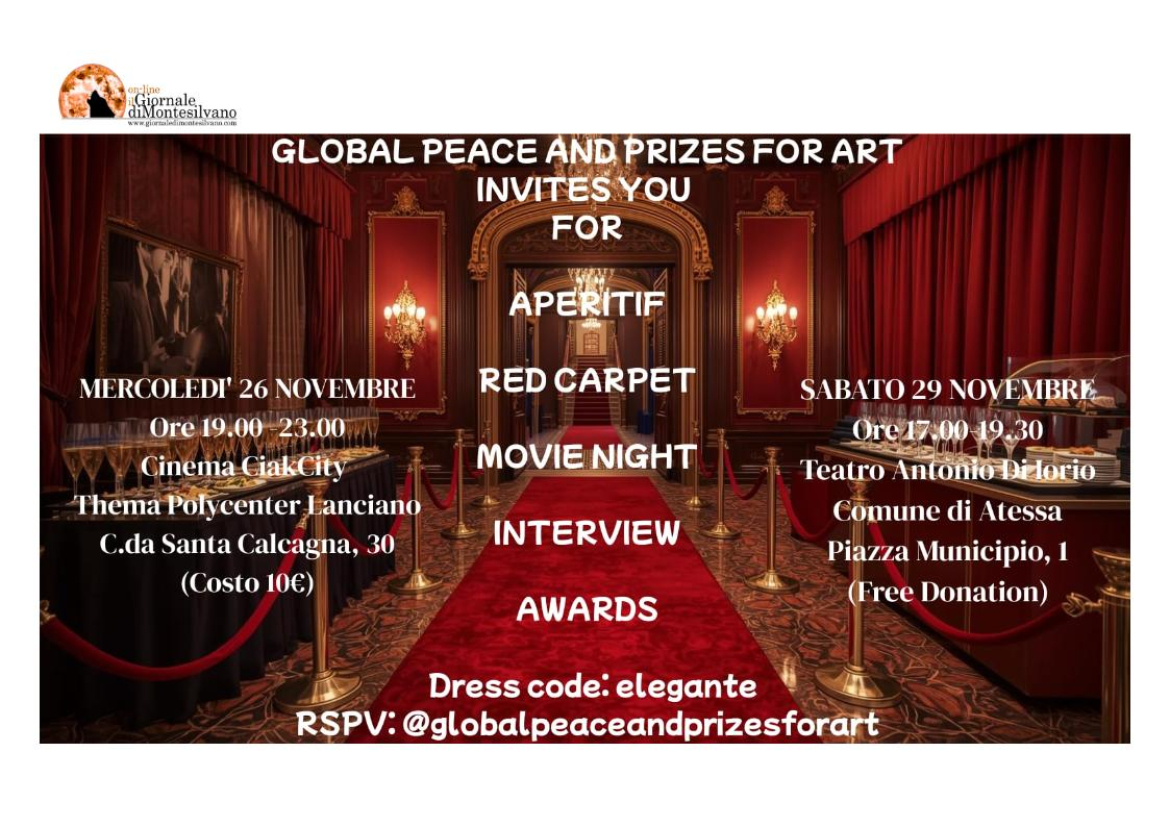 L’Associazione Global Peace and Prizes for Art organizza due momenti di grande prestigio con il cinema insieme al registra abruzzese di fama internazionale Stefano Odoardi.