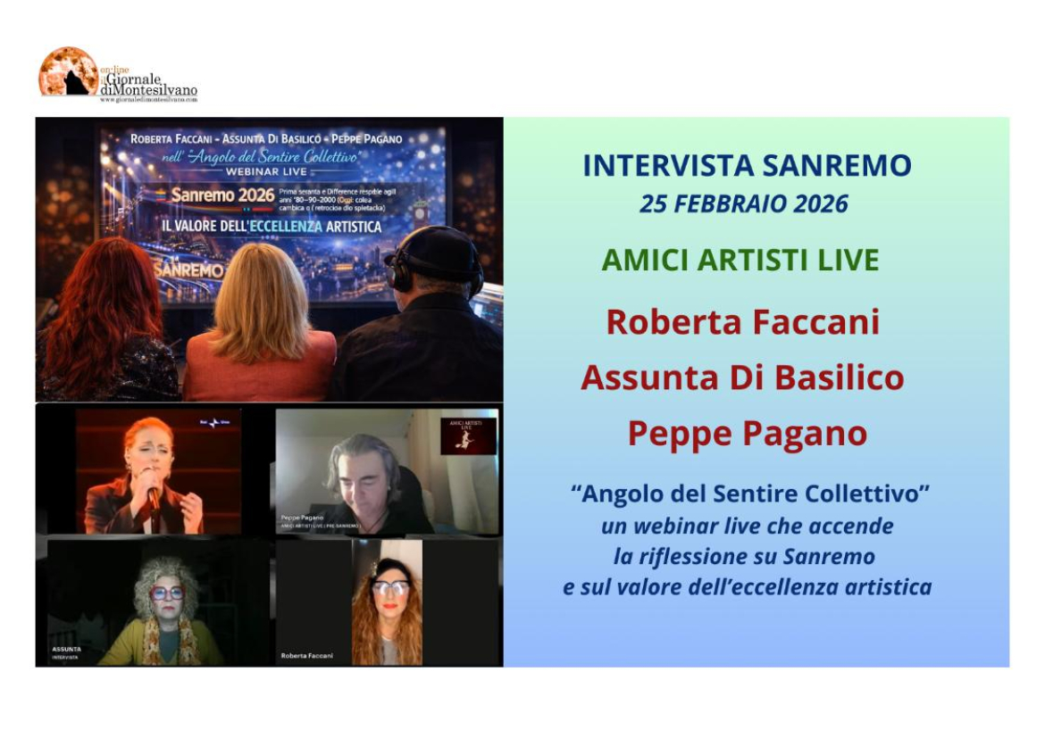Un’intervista, del giorno 25 febbraio 2026, che non si è limitata alla cronaca, ma ha aperto uno spazio di lettura culturale, musicale e umana. È questo il segno distintivo del webinar live andato in onda sui social nell’“Angolo del Sentire Collettivo”, condotto dalla Dott.ssa Assunta Di Basilico e sostenuto dalla regia di Peppe Pagano, artista polivalente e direttore del format, in collegamento live da Londra.